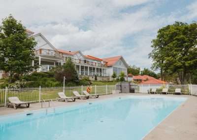 The outdoor pool and beach are open from May-October, but are at their warmest in July and August. If you love a cold plunge, we got you!